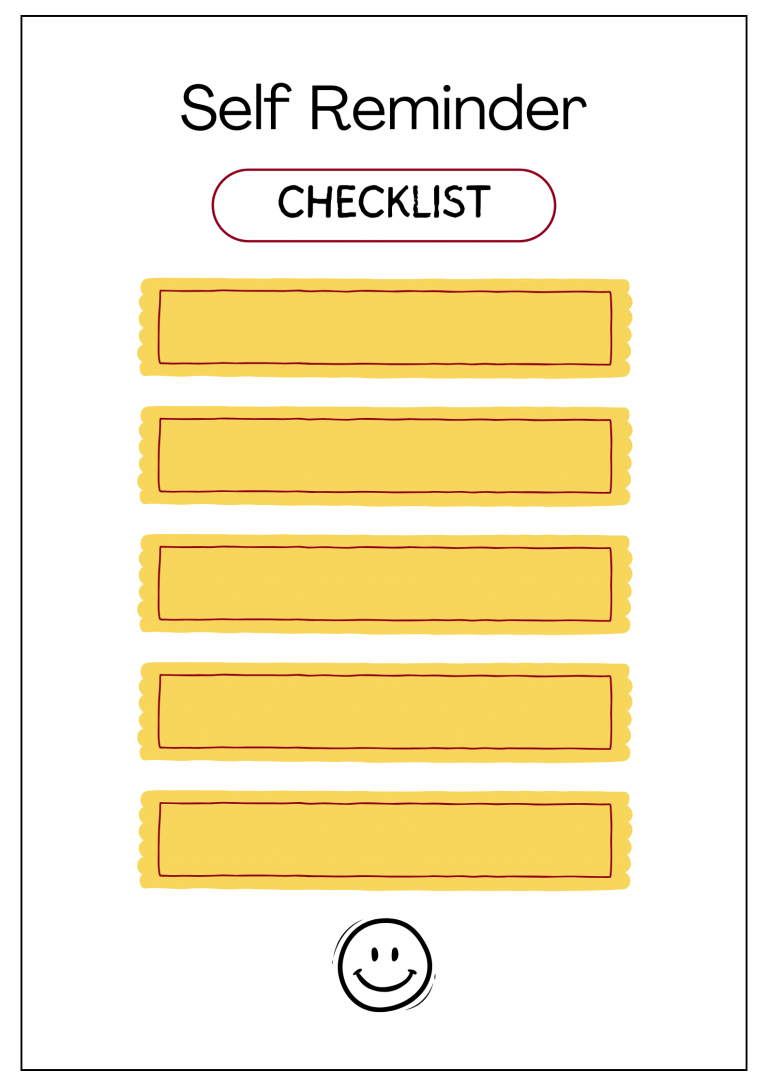 Whether you choose to pin it up at work, in your kitchen or over the loo, whether it’s for you or someone else, a Self Reminder Checklist can help keep you positive and focussed.